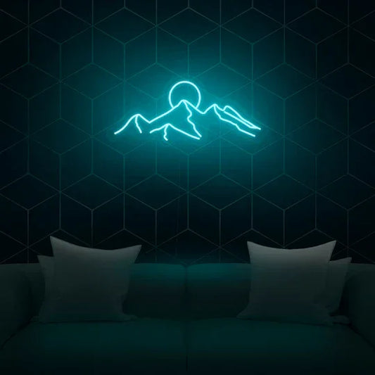 ENSEIGNE NÉON LED COUCHER DE SOLEIL SUR LA MONTAGNE